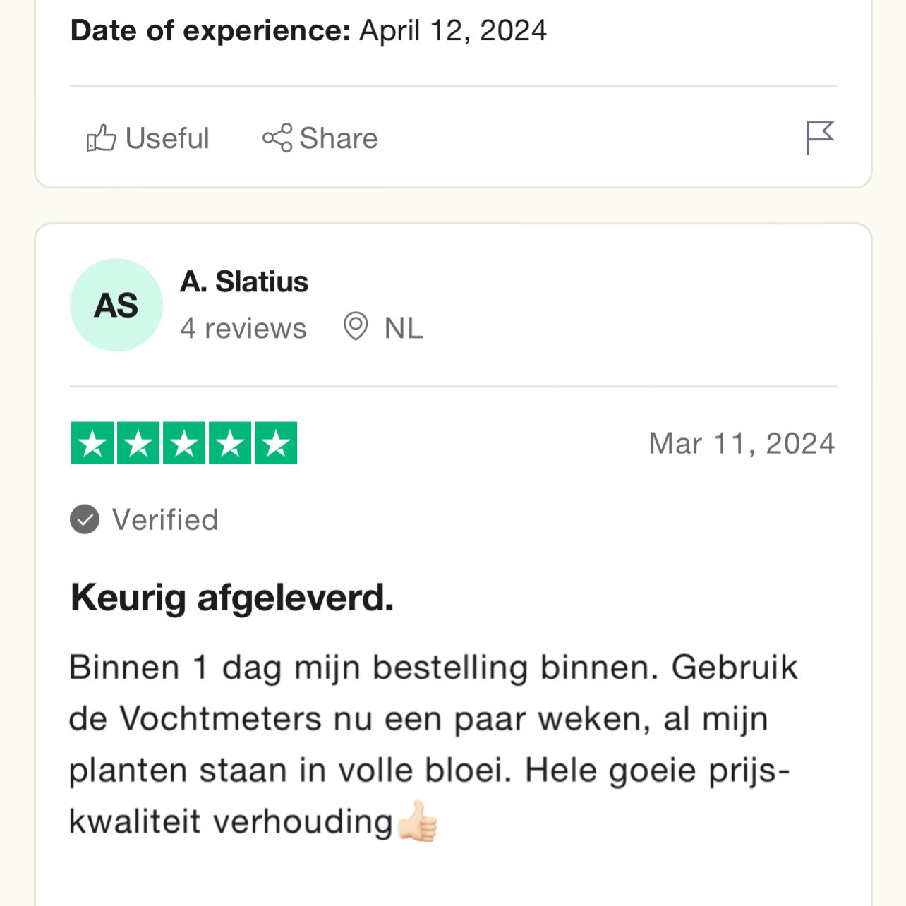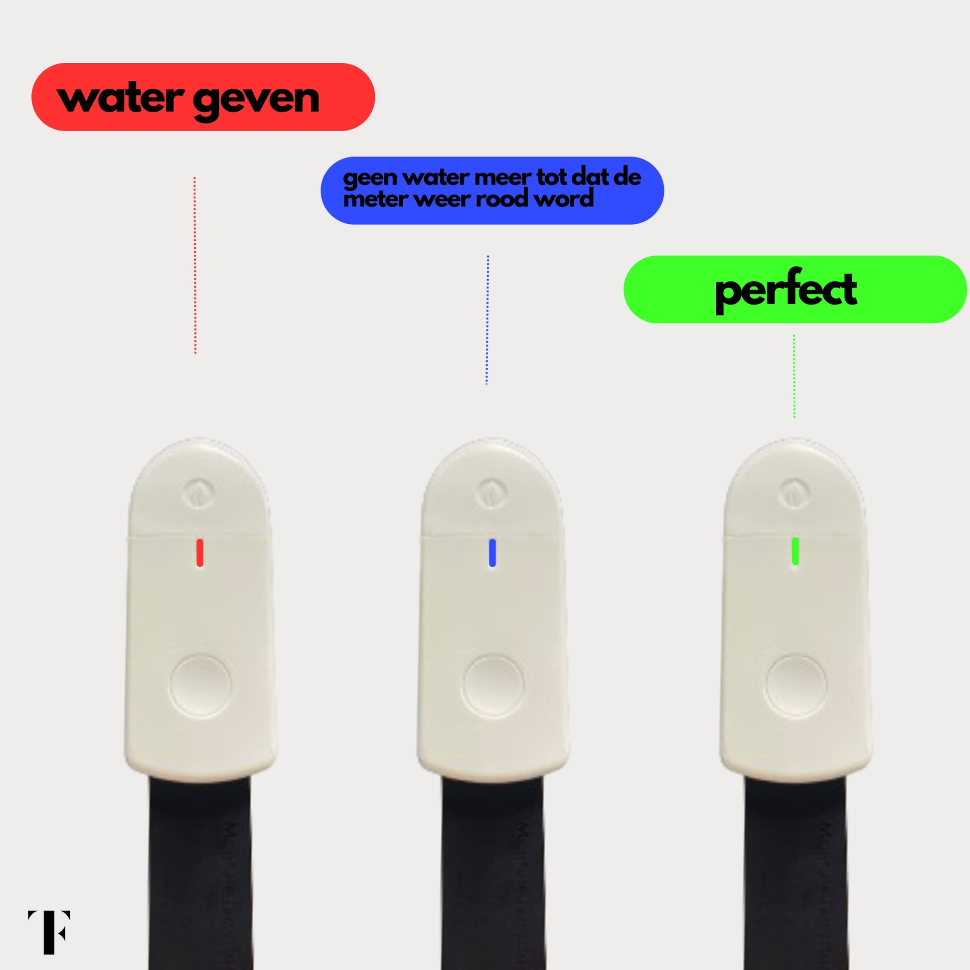 Inderdaad! De vochtmeter zal meten hoeveel water de plant heeft opgezogen en dus een droge grond als resultaat heeft, als de plant geen water nodig heeft zal dit langer duren en hoef je dus geen water te geven!